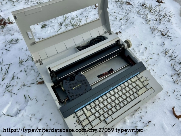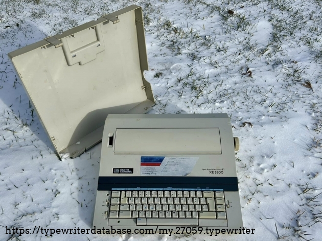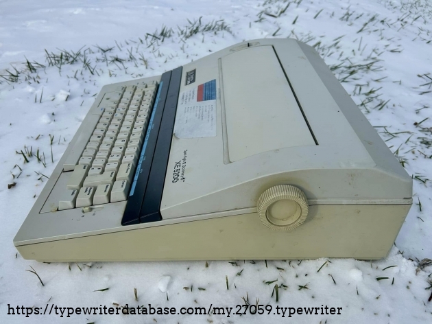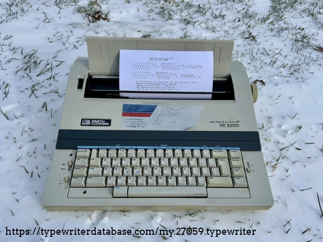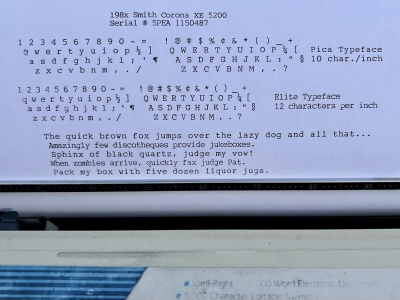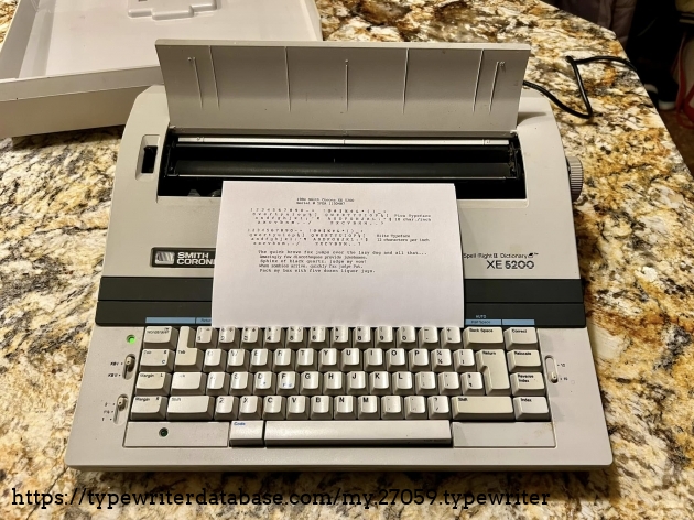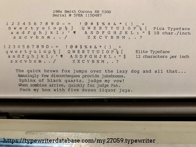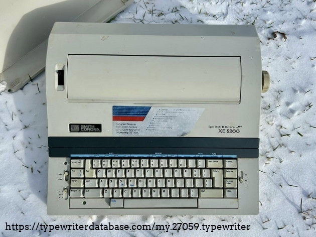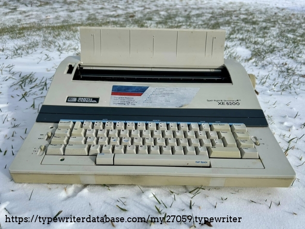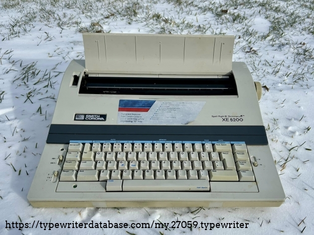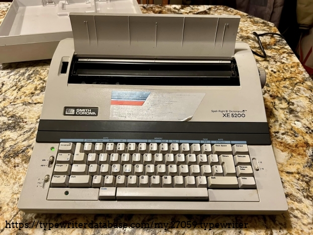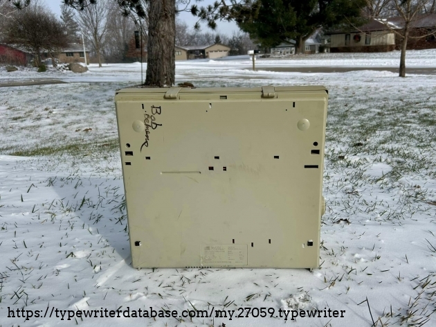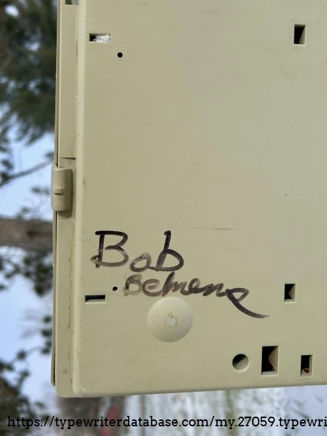No Smith Corona XE 5200s on the database, so I'll add this one. It belonged to my dad's friend, Bob Bemens--whose name is written on the bottom--of Carroll, Iowa. It was given to me in December of 2025. I had a daisywheel wedge-slash-early word processor like this in my youth, so it has a very familiar feel to it, and it types surprisingly well.