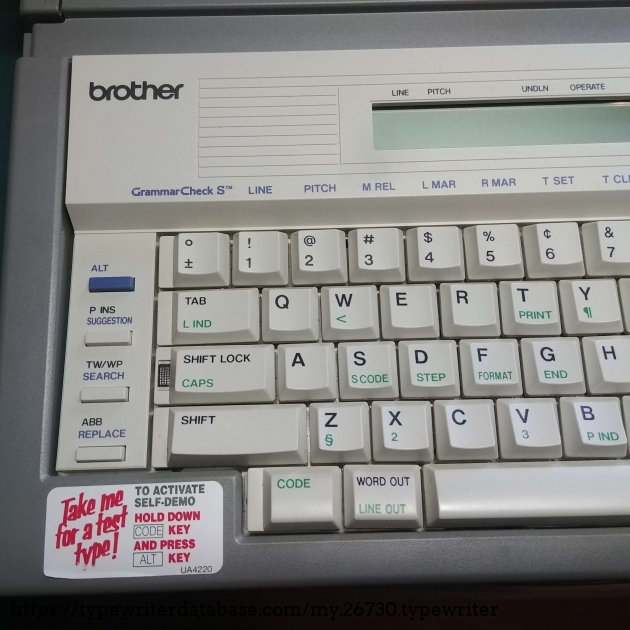 This is the fully featured model with a 40 by 2 caracters LCD display, a speller check and 23 kilobytes of memory, enough for 10 pages or more of text. Selectable pitch of 10, 12 and, 15 cpi. Advanced correcting function keeping the full current line of caracters in memory.