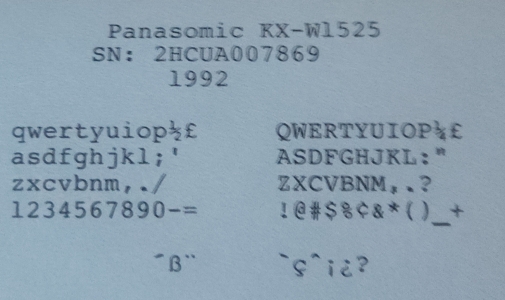 RESEARCH NOTE: When researching the Panasonic KX-W1525 on a computer with lots of screen real estate, you may find that launching the Panasonic Serial Number page and the Panasonic KX-W1525 By Model/Year/Serial page in new browser windows can give you interesting perspectives on changes throughout the model series.