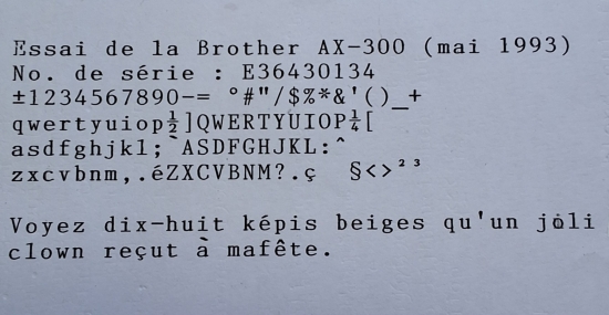 RESEARCH NOTE: When researching the Brother AX-300 on a computer with lots of screen real estate, you may find that launching the Brother Serial Number page and the Brother AX-300 By Model/Year/Serial page in new browser windows can give you interesting perspectives on changes throughout the model series.