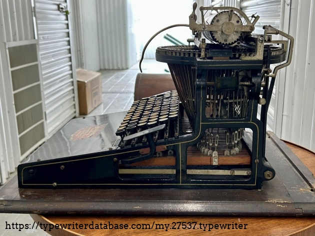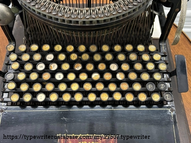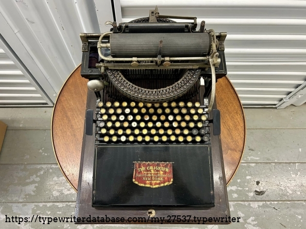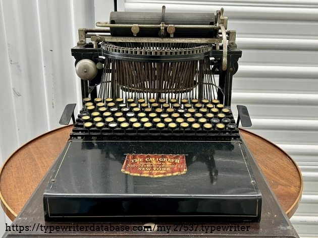 An absolutely beautiful Caligraph 3 Special. The celluloid keytops have deteriorated, but otherwise excellent original condition... and the case and lid too! Connecticut, October 2025.