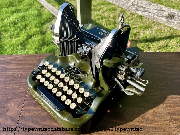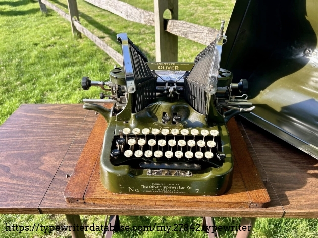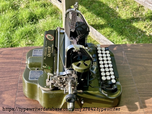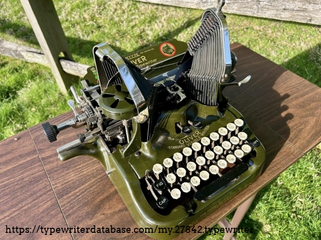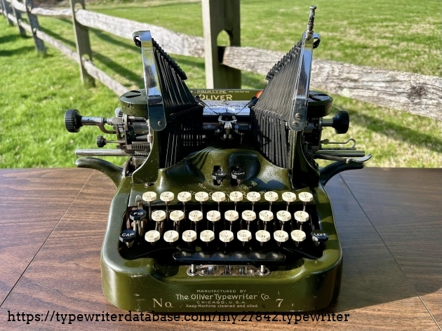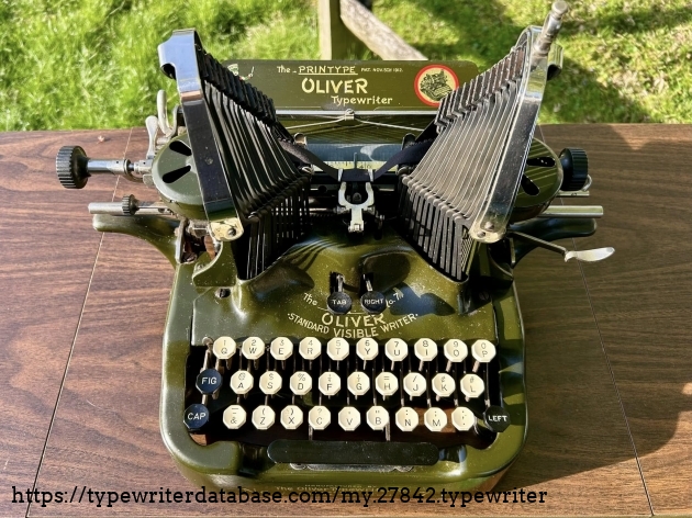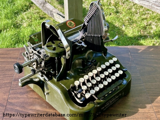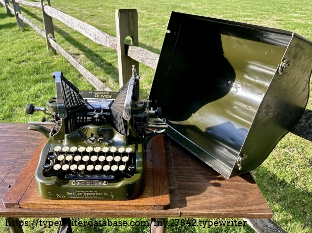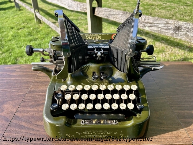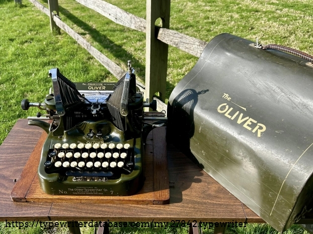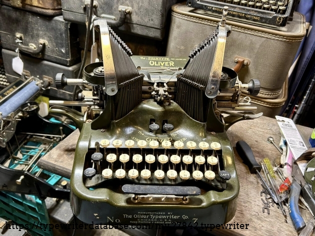 An exquisite example of an Oliver 7, with wooden base and metal lid. Really great machine. Acquired in Connecticut in October of 2025.