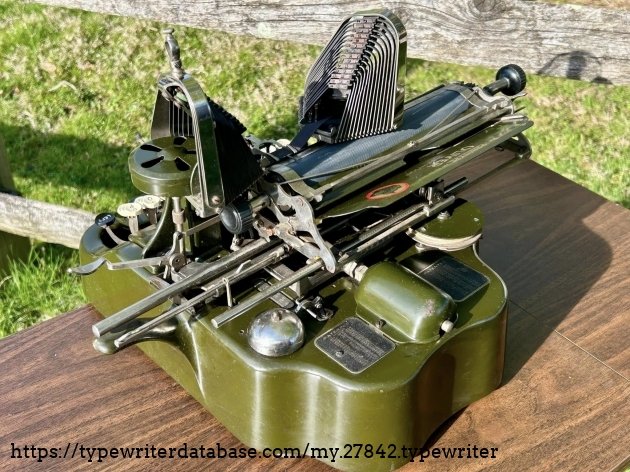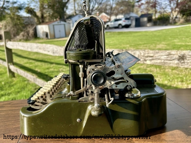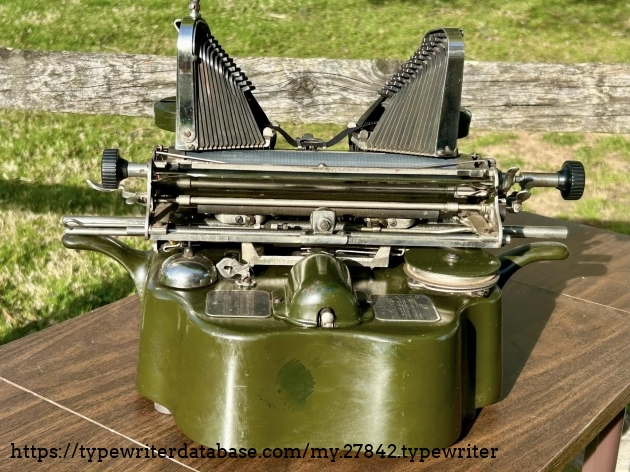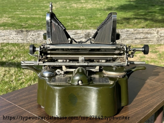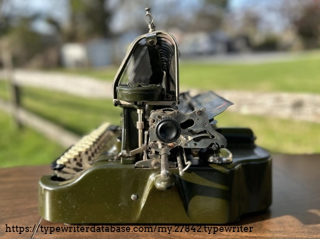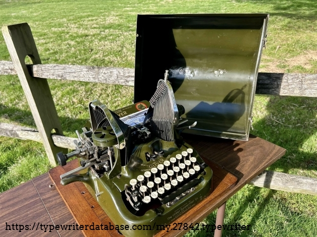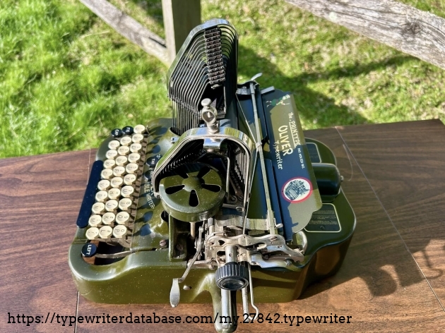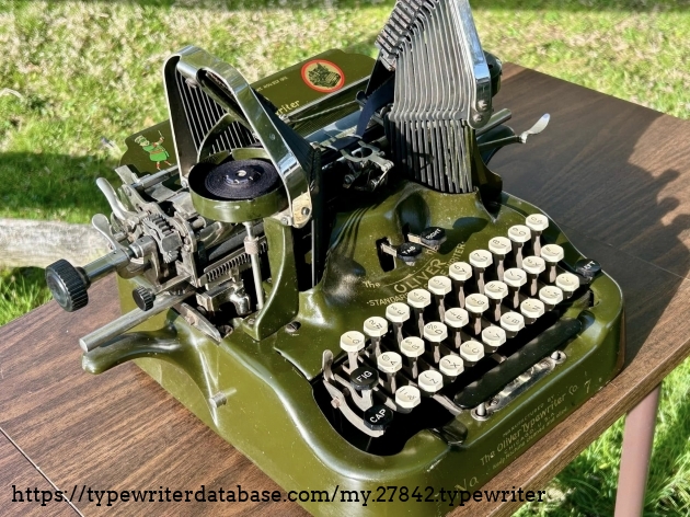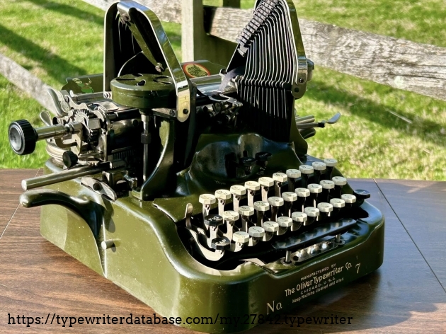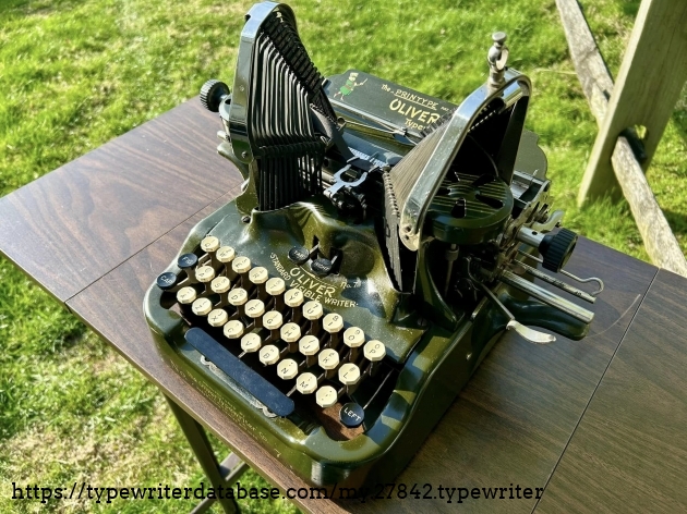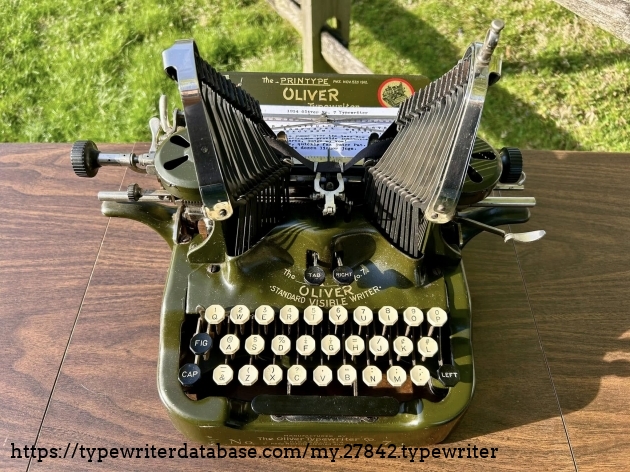 An exquisite example of an Oliver 7, with wooden base and metal lid. Really great machine. Acquired in Connecticut in October of 2025.