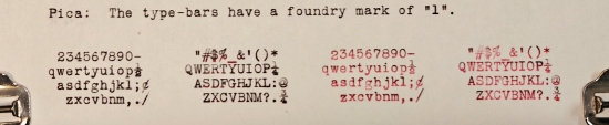 1-31-2026 Update. I cleaned the segment and typebars to resolve the sticky keys. Now it types much better. I re-did the typing sample and the set of images, adding quite a few. This was motivated by noticing that (1) there is a matching serial number underneath on the frame, which I did not realize before; (2) I wanted to show the foundry marks on the typebars - the marks are a numeral "1", indicating pica typeface; (3) I discovered that the typebars are numbered sequentially from left to right in the basket.