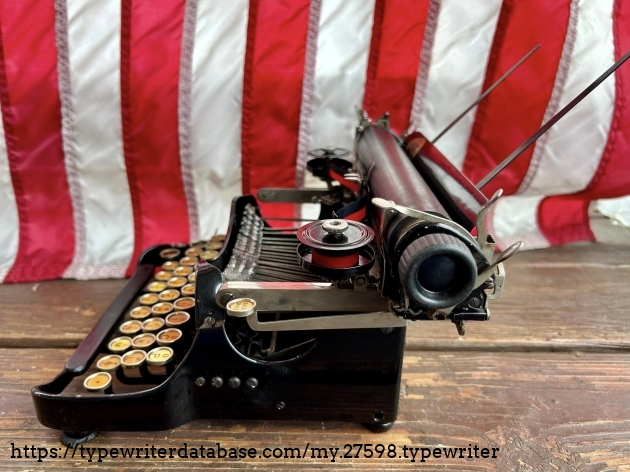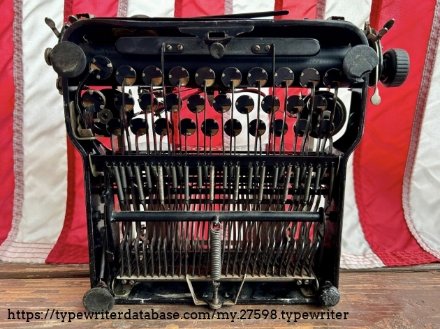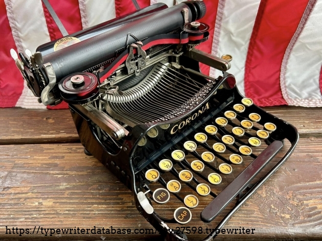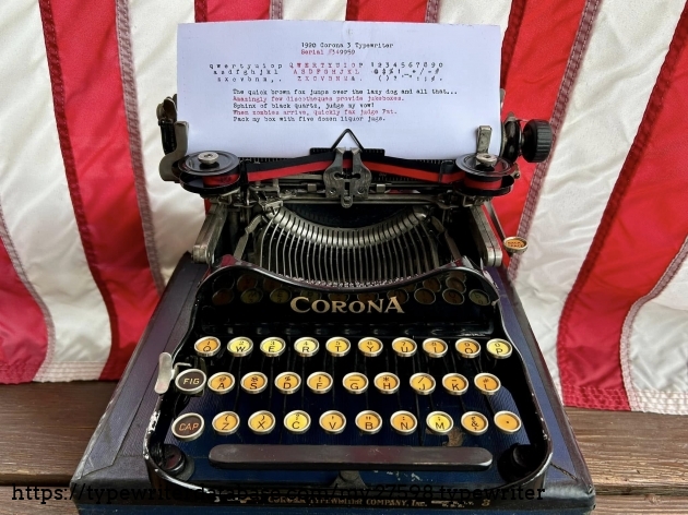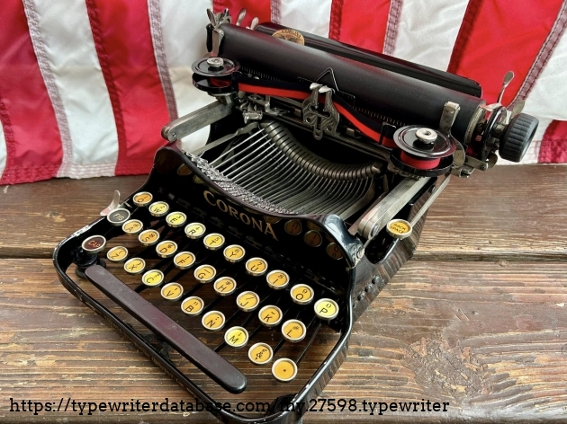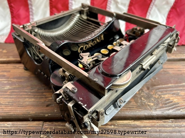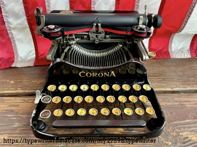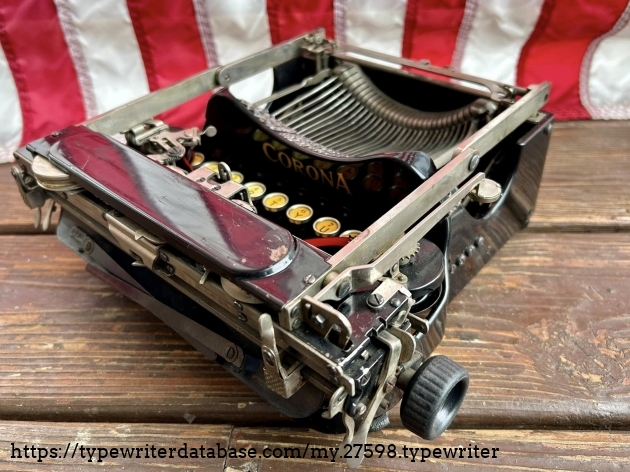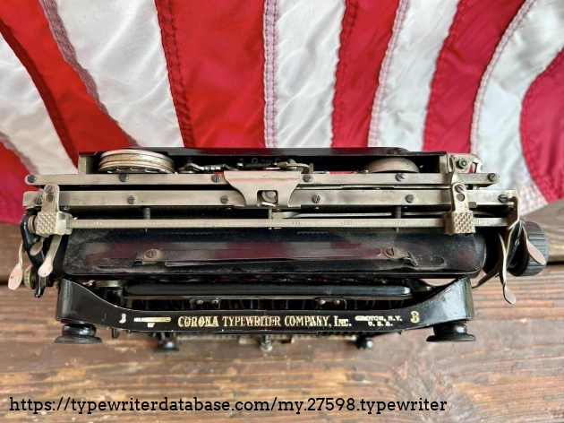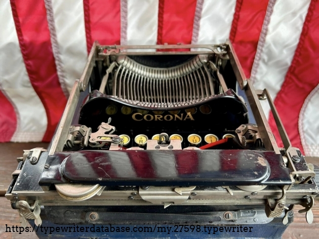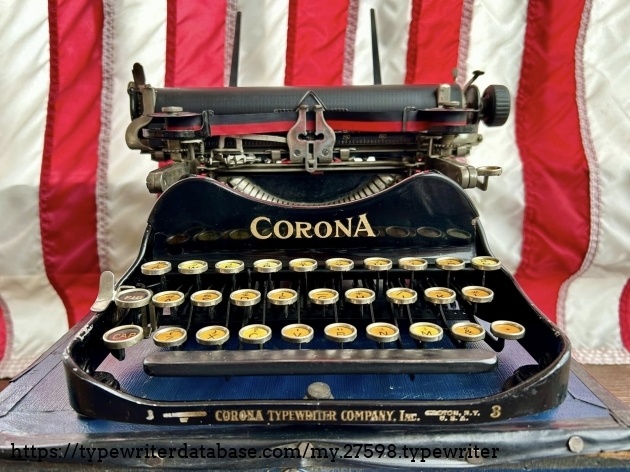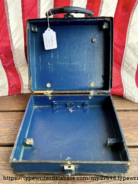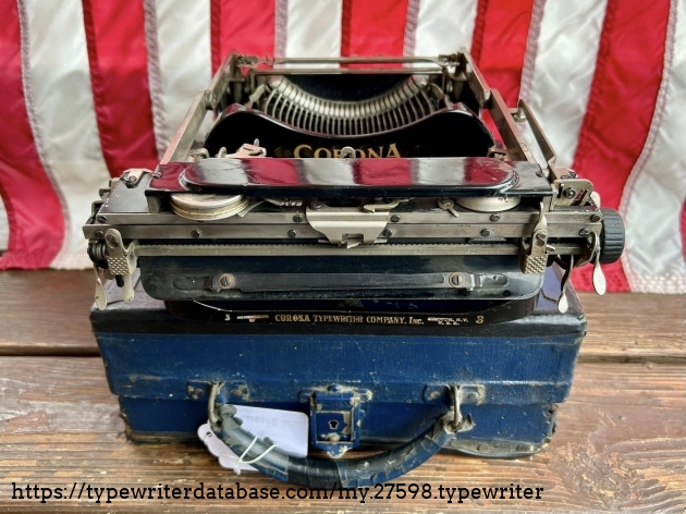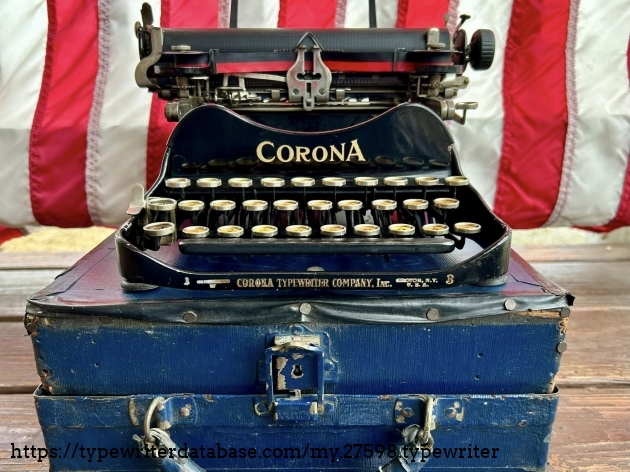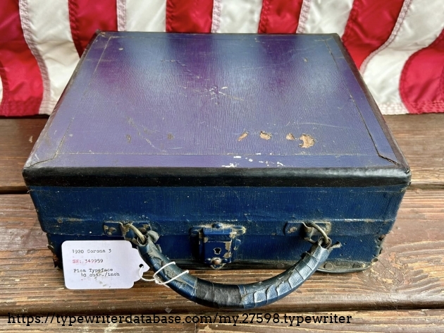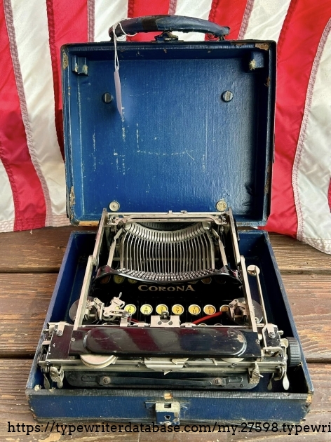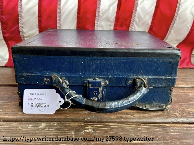 This Corona 3 was purchased off of Facebook Marketplace in Hatfield, PA in March of 2026 from a man who said that his father owned it for many, many years. After I got it home, I noticed that someone had filed-off the serial number on the frame. BUT! Whoever did that likely didn't realize that they often also etched the serial number on the underside of the carriage, which is where I indeed found it. The blue case came from a parts machine from Peter and Tikva Tytell's collection on the Upper West Side of Manhattan.