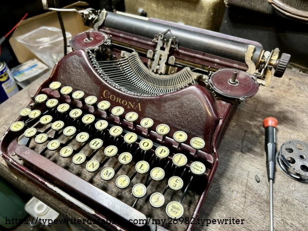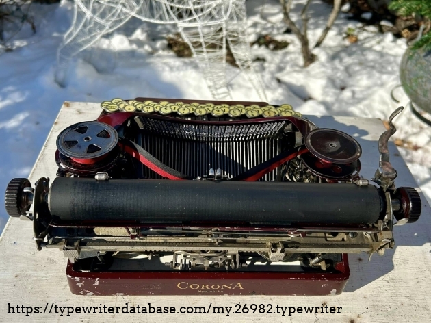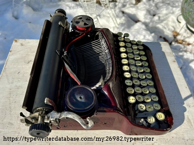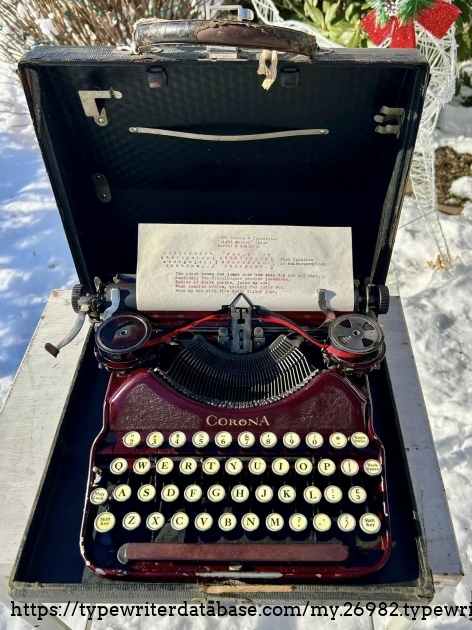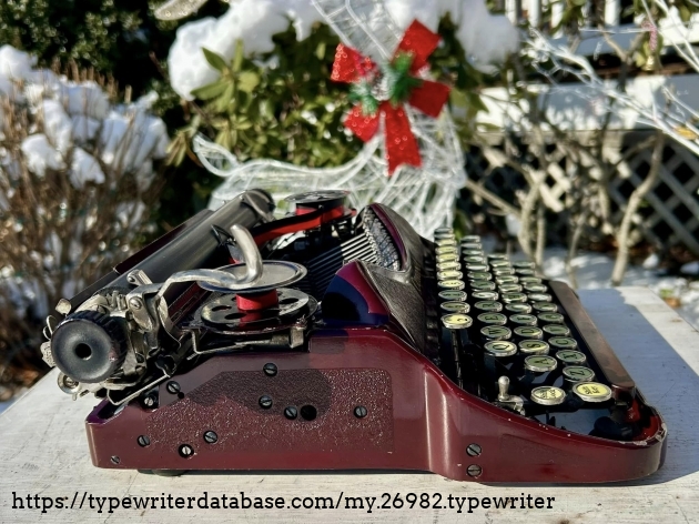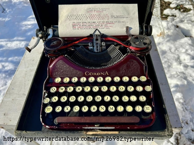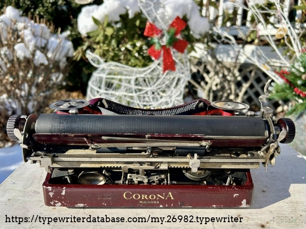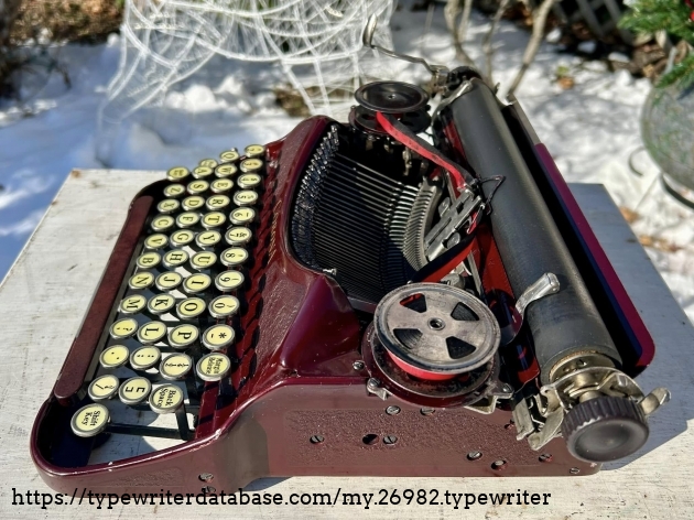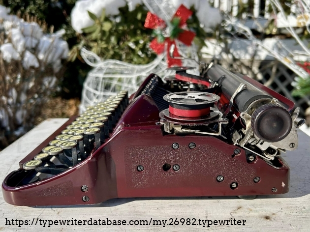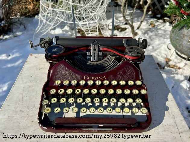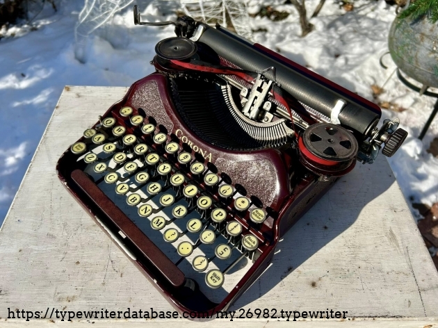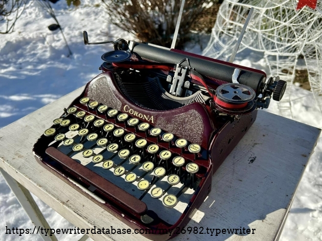 A "light maroon" Corona 4, which I always figured was more burgundy. Purchased from a fellow typospherian in New Hope, PA in September, 2025.
