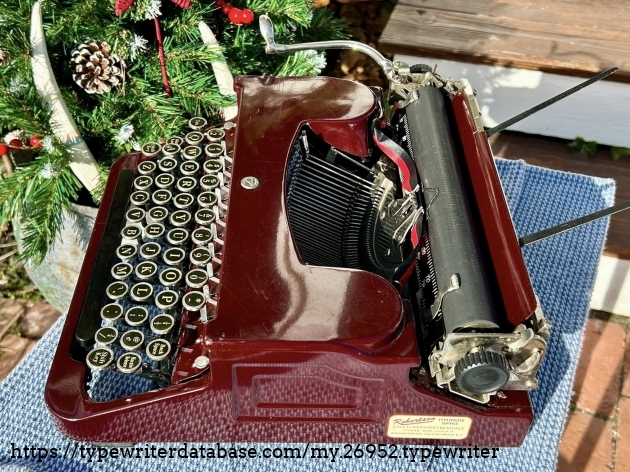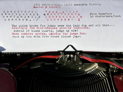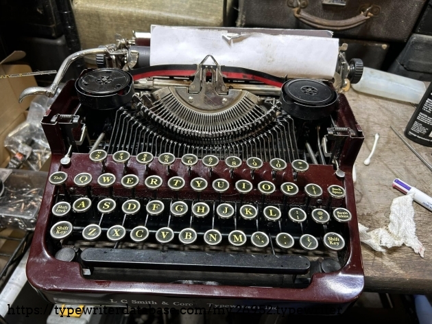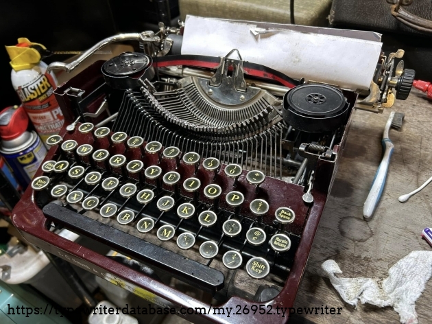 A gorgeous burgundy flattop. Needed work. Can't quite remember where or when I got this one. Likely from a fellow typewriter enthusiast in the summer or fall of 2025.
