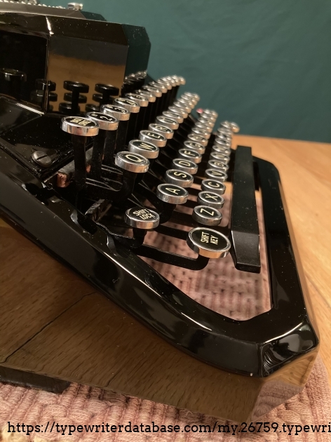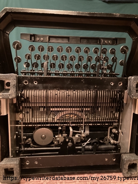 This one will get the JJ Short treatment. The key lever rest rubbers need to be replaced. The only thing amiss was that the back space spring was routed over the bell striker arm.