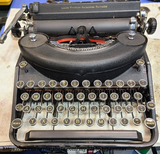 Gifted to me by a fellow collector, this noiseless Smith Premiere Noiseless portable (Remington) qwertz will have another life to live. All the umlauts and accent keys you'd need.