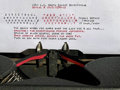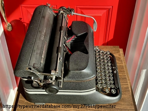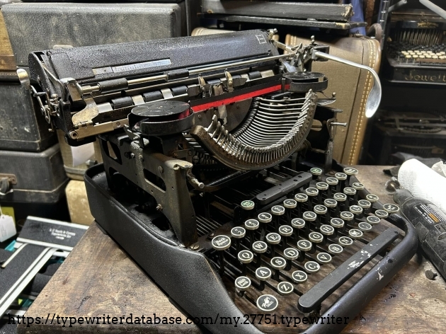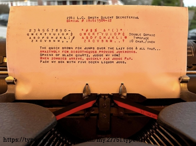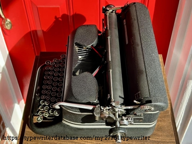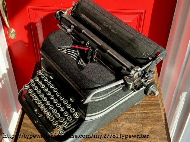 Didn't think much of this Silent Secretarial when I was doing a house cleanout in Ardmore, PA in December of 2024 (I was there for a Royal HE), until I looked down to find that this horribly dirty machine actually had double gothic typeface. Cleaned up okay.