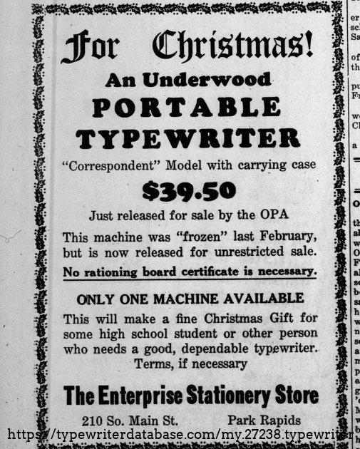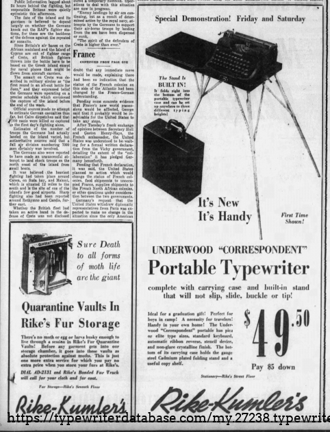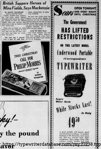 One for an update to the main page SN info. An S Correspondent sold in 1941-42. And another example that blows up the "no typewriters available during the war" myth.