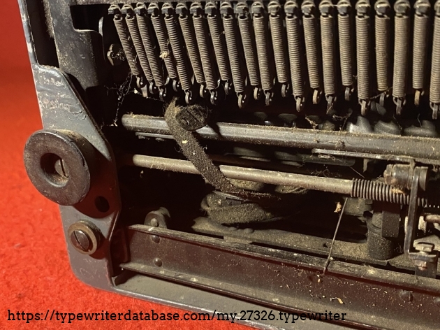 The machine is in terrible but not dramatic condition: everything is jammed, the lid is missing, the right lid support is missing, the return cable is disconnected (but appears intact), and other surprises are sure to await. The Robust is, however, a relatively easy typewriter to restore, especially since the restoration will be conservative, without altering its original condition.