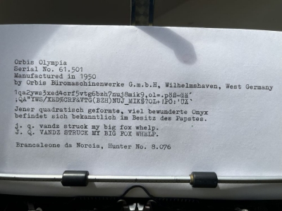 Fellow typospherians, may I introduce myself? I'm Brancaleone da Norcia, Typewriter Hunter and TWDB Patron from Germany. My main focus is collecting portable machines from the 1950s to the 1970s. I particularly appreciate good industrial design and durable construction. Many Olivetti models inspire my enthusiasm. I'm pretty good at touch typing, enjoying it a lot – it's very contemplative. At last, I have a particular fondness for pangrams and am always happy to discover new ones. Looking forward to get in touch with you, kind regards, Brancaleone.