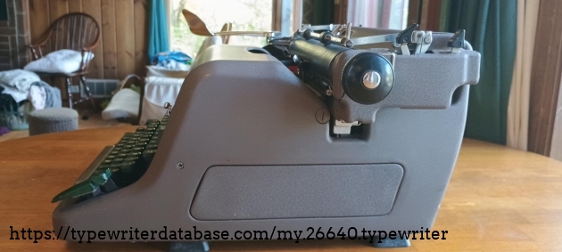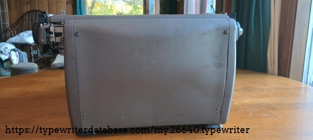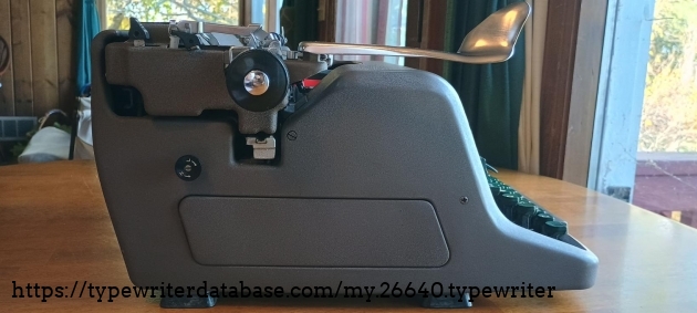 This was my first typewriter, found in a Goodwill. It was in great shape and only needed a bit of cleaning and some original spools to work perfectly. It has the Elite typeface and the standard carriage size.