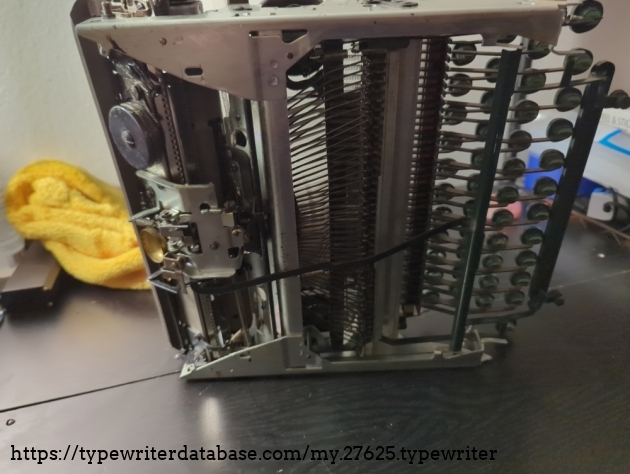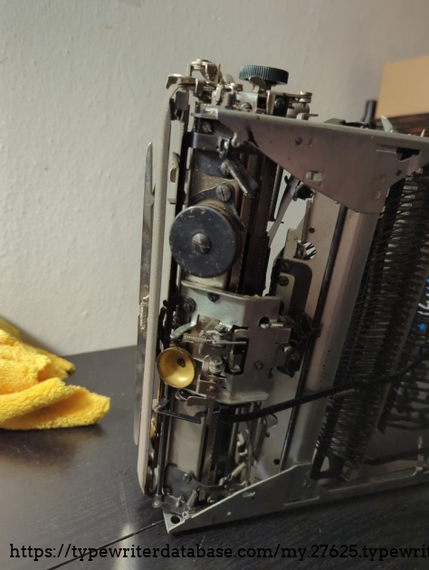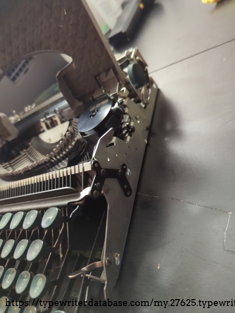 As well, it is missing the part which engages the platen ratchet mechanism from the platen knobs, but, at least, the carriage return lever advances the ratchet properly. I plan to attempt the design and 3D printing of a replacement part.