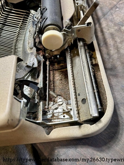 This machine was more eraser-shaving than typewriter when I received it from a fellow typewriter enthusiast in Royersford, PA in September, 2025.