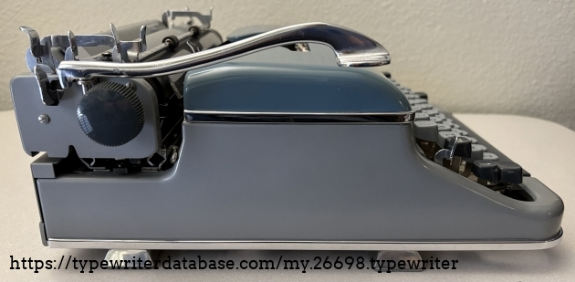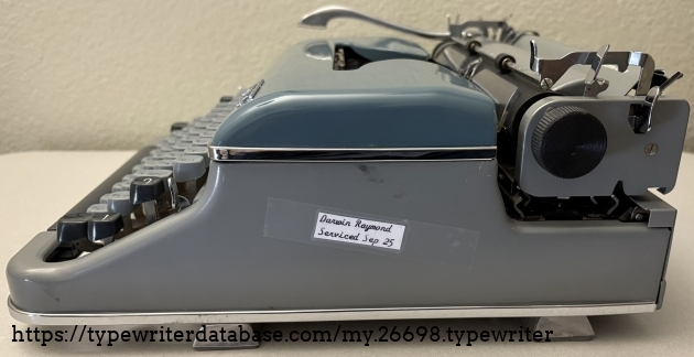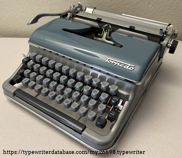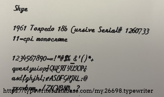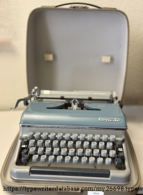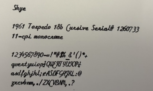This is the first time I have purchased a machine that was professionally restored and paid the premium price to do it. I have often purchased machines that needed a repair, or a service, but never a full restoration. I would have buyers remorse if Skye wasn't such a smooth typer. The action is "solid" but not stiff. It feels good, the closest thing I have experience to it are my Hermes 3000 machines and even they have a different feel, but share that aspect of solidness. Skye is a gorgeous robin's-egg blue and grey with blueish-grey keys. It is also a cursive machine, one of only two that I own. I have a feeling Skye is going to spend a fair amount of time out in public view.