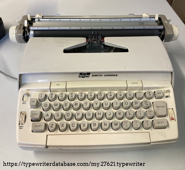 RESEARCH NOTE: When researching the Smith Corona 200 on a computer with lots of screen real estate, you may find that launching the Smith Corona Serial Number page and the Smith Corona 200 By Model/Year/Serial page in new browser windows can give you interesting perspectives on changes throughout the model series.