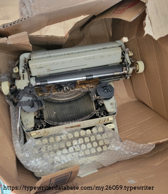 Purchased 3/6/2026 on eBay from original owner. This appears to be the exact model (or close enough) my dad used as a journalist in the 60s and 70s. It's not the same color but it really reminds me of my childhood. It shipped from Lawrenceville, GA. Long story short, crappy shipping experience, machine is wrecked for anything other than parts. Blurry picture below that is the only picture of my dad's.
