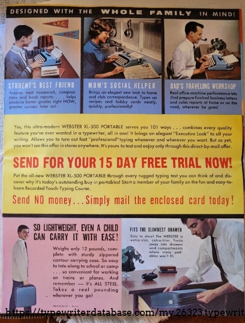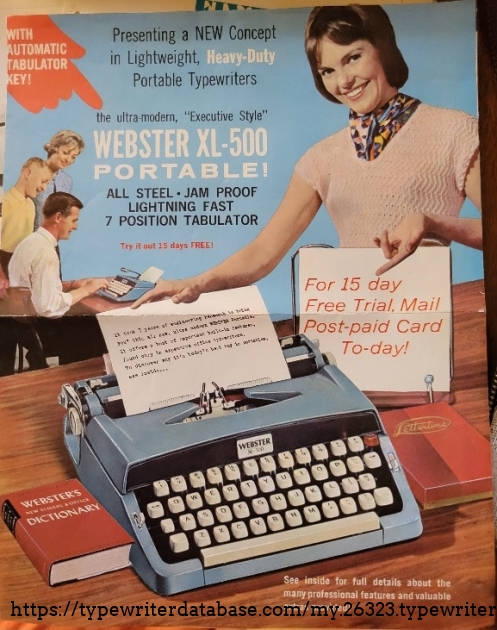 RESEARCH NOTE: When researching the Webster XL-500 on a computer with lots of screen real estate, you may find that launching the Webster Serial Number page and the Webster XL-500 By Model/Year/Serial page in new browser windows can give you interesting perspectives on changes throughout the model series.