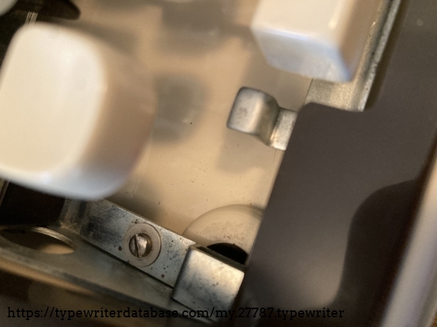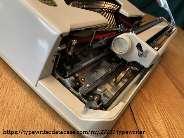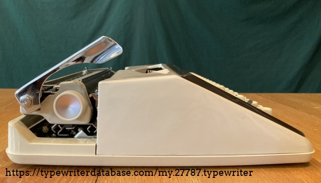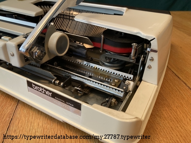 This one has a different cover than the 77 and it is definitely setup for a clam shell cover. Whereas my initial assement was off on the 77. There is no way a shell would attach and not pull the ribbon cover off. This cover has a proper latch at the back and the holders for a clam cover are there (images). Anyway, this one came with a soft case with the literature for the machine in the case, so I'd say that's how this one left the dealer.