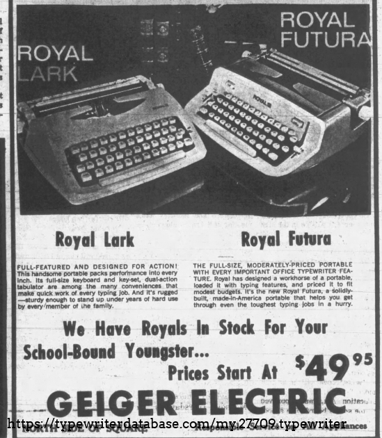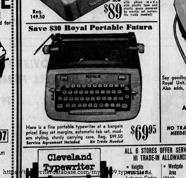 RESEARCH NOTE: When researching the Royal Futura on a computer with lots of screen real estate, you may find that launching the Royal Serial Number page and the Royal Futura By Model/Year/Serial page in new browser windows can give you interesting perspectives on changes throughout the model series.