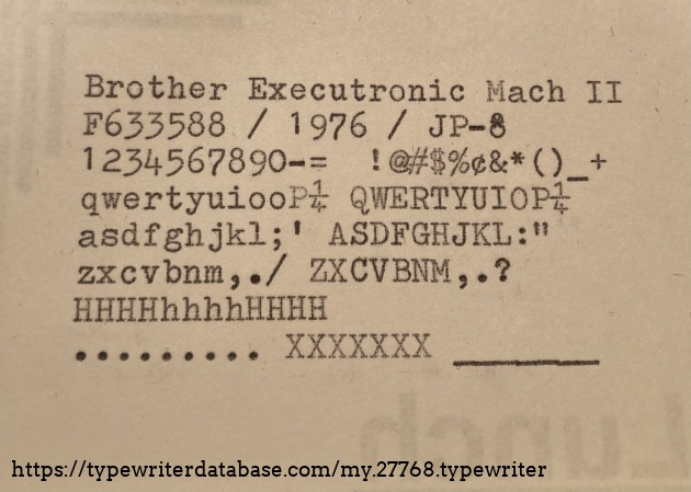 RESEARCH NOTE: When researching the Brother Executron Mach II on a computer with lots of screen real estate, you may find that launching the Brother Serial Number page and the Brother Executron Mach II By Model/Year/Serial page in new browser windows can give you interesting perspectives on changes throughout the model series.
