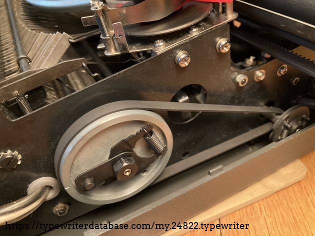 Little used but the belt had fallen apart and what was left was gooey. These have the drive on the right and use a flat belt running on a driven pulley with no groove. So an o ring will not stay in place. For testing I used a #64 rubber band. After looking about for some flat belt options, I used a HD version of the #64 rubber band that is approximately double the cross sectional width. Long term, who knows?